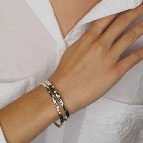 Divertido y coqueto, los diamantes bailan en este brazalete de oro blanco o amarillo de 14K con tachuelas. Rápidamente se convertirá en una pieza básica de tu colección. Este brazalete de 6,5 pulgadas se ajusta tan cómodamente que olvidará que lo tiene puesto... ¡pero todos los demás lo notarán!