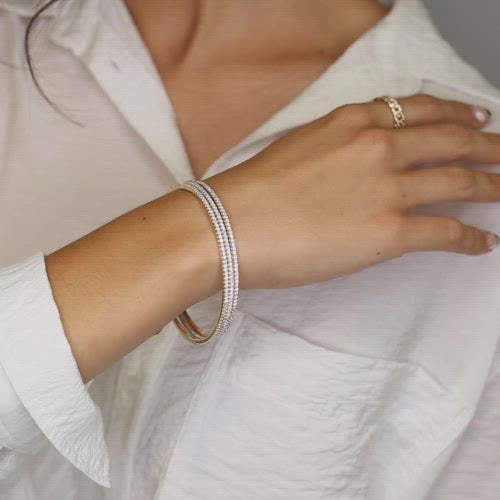 Este brazalete de diamantes puede ser independiente y ser la estrella en su descanso o ser un gran jugador de equipo cuando se apila.