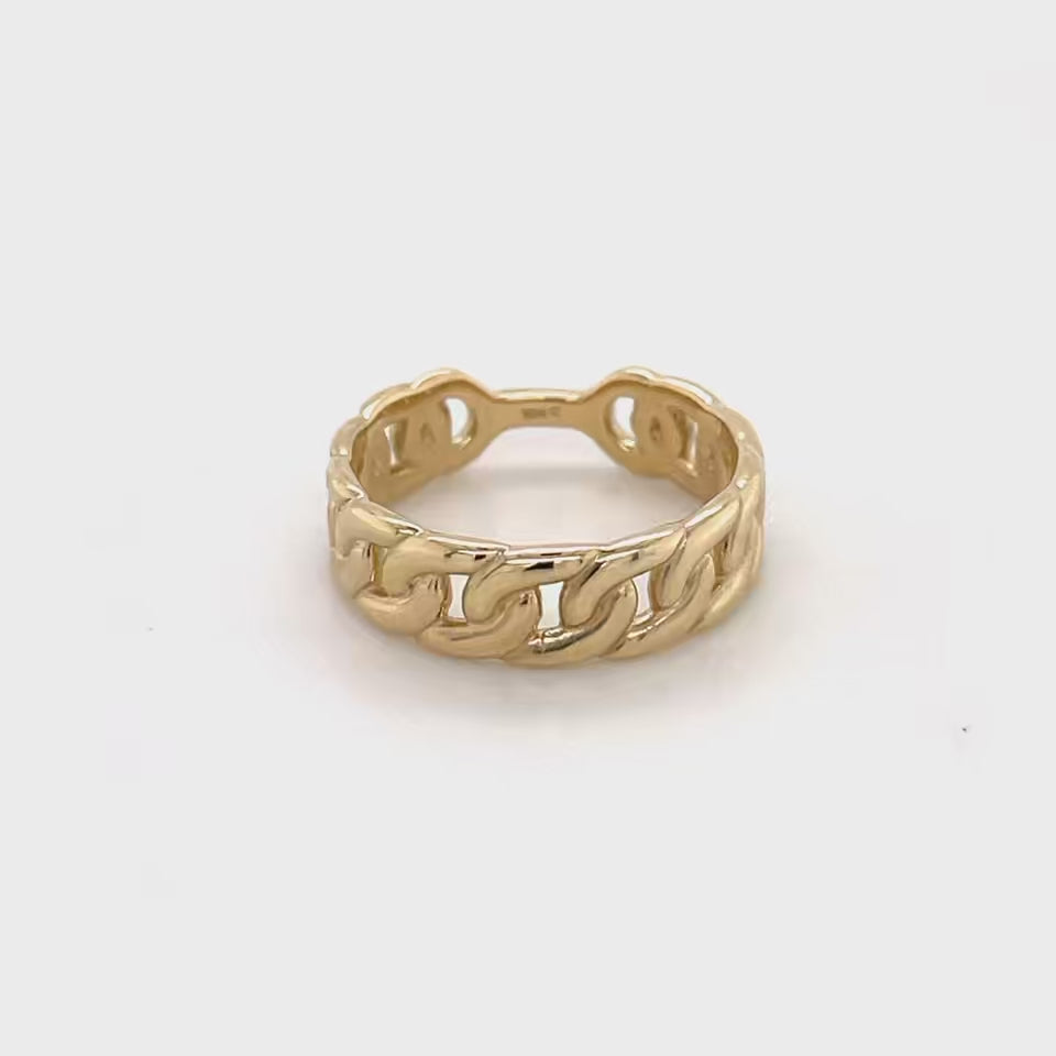 Anillo de cadena cubana. Este anillo es la combinación perfecta de ancho de punto dulce (6 mm) y un diseño moderno y elegante en amarillo 14K.