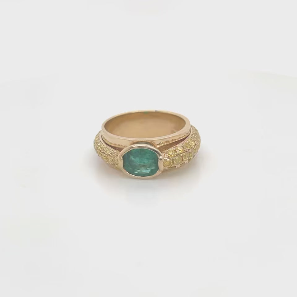 Glam up with this exquisite 18K yellow gold piece featuring 1.24 CTW of dazzling fancy-yellow diamonds and a stunning 1.07 ct emerald - weighin' in at 8.65 grams. You'll be sure to turn heads with this beauty!