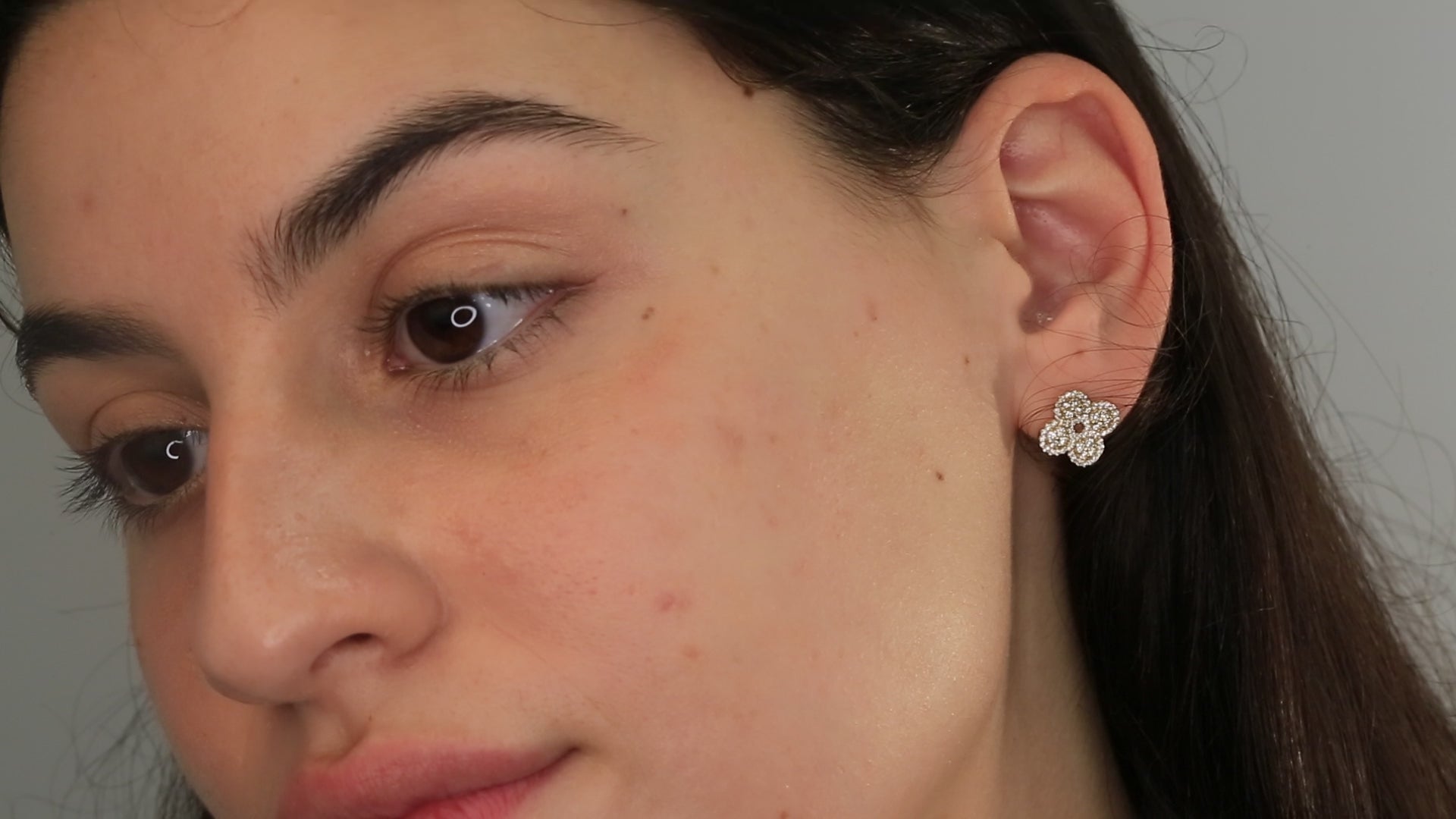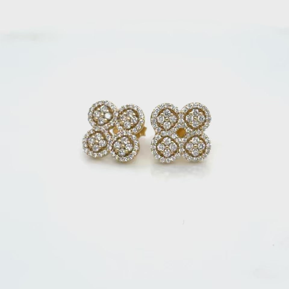 Natural diamonds come together in a cloverleaf pattern set 14K yellow gold. Comfortable, stylish and brilliant.