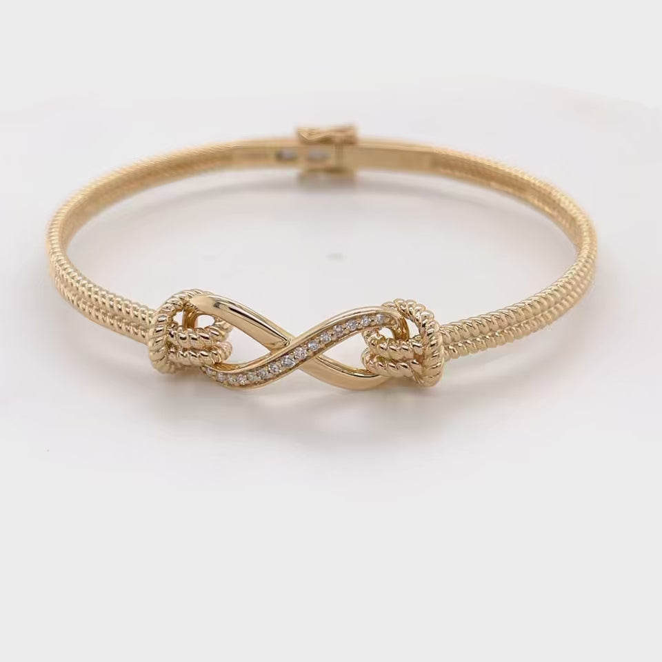 Make a statement with this gold and diamond cuff, available in yellow, white, or rose gold.