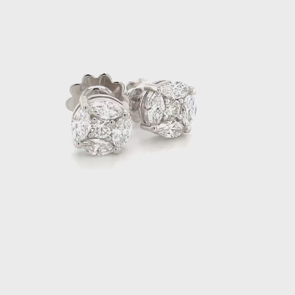 These multi-stone diamond studs give a big look. The secret is high-quality diamonds G-H color & VS2 clarity on top of Italian craftsmanship.